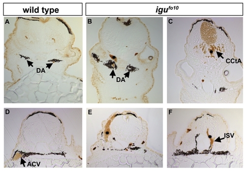 Multiple vessel origins for hemorrhages in igufo10 mutants at 48- 52 hpf |