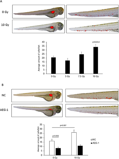 - Gnosa et al., 2016 - AEG-1 knockdown in colon cancer cell lines inhibits radiation-enhanced migration and invasion in vitro and in a novel in vivo zebrafish model