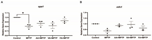 Effects of natural phenolics compounds on mRNA level of genes related to mitochondrial fusion. Relative gene expression of ( |