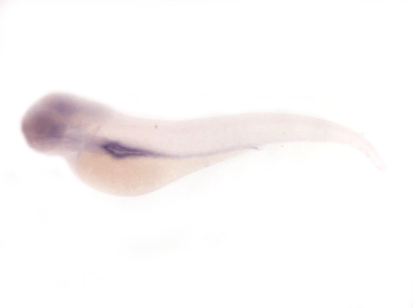 Please note that in 5 day old embryos some structures are not accessible to the probe (such as notochord, most of the trunk and tail). Therefore the description of the expression pattern is only partial.