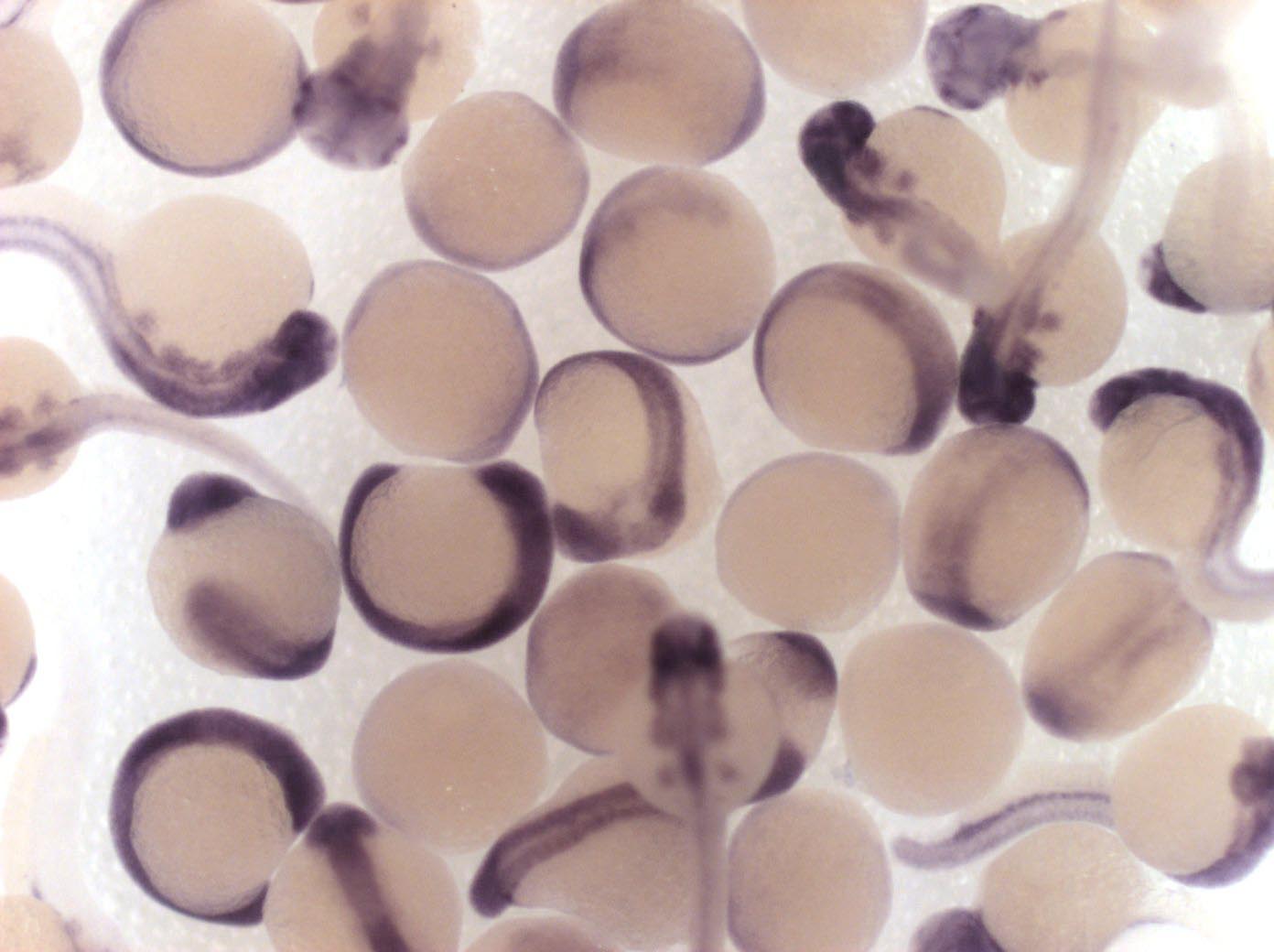 More in blood at 24 hpf and in central nervous system and branchial arches at 36 and 48 hpf