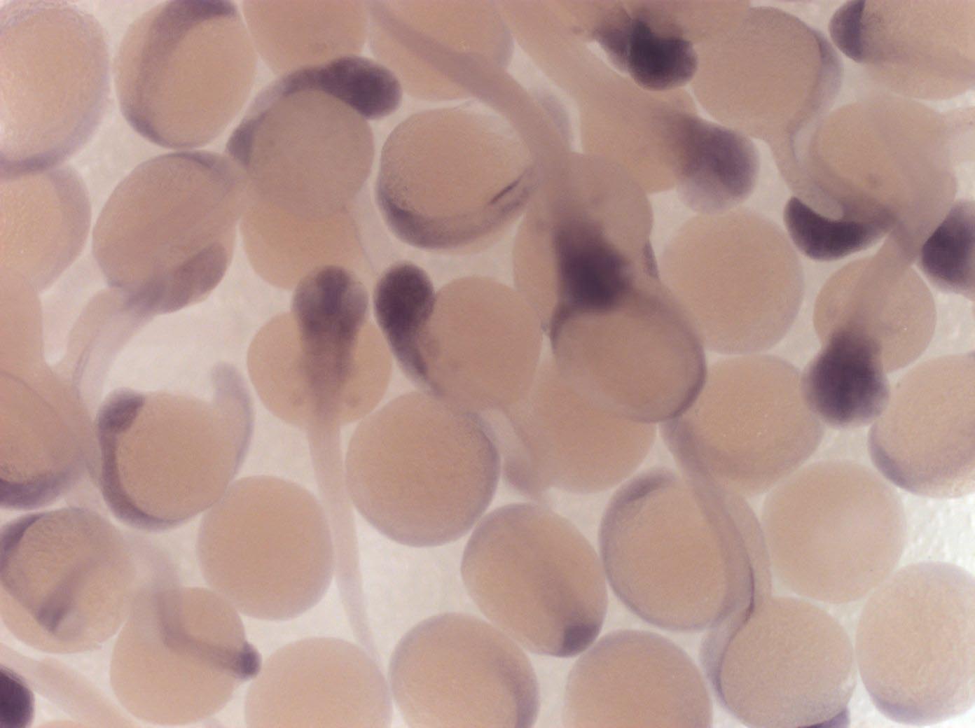 More labelling in pronephric ducts at middle of somitogenesis and 24 hpf