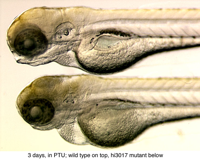 Original Submitter Comments: day 3: a little necrosis in head; day 5: head and body a little necrotic, small head and eyes, underdeveloped liver/gut, sometimes pericardial edema