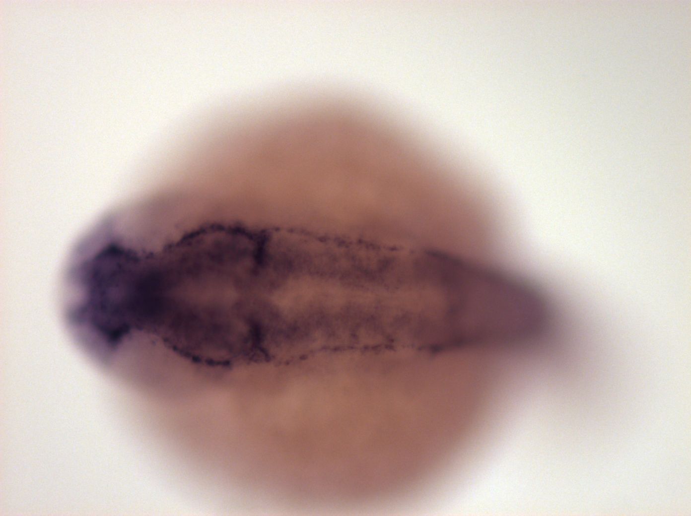 Fig. 4 head dorsal epidermis, forebrain ventricular zone, tegmentum, MHB, hindbrain, proctodeum