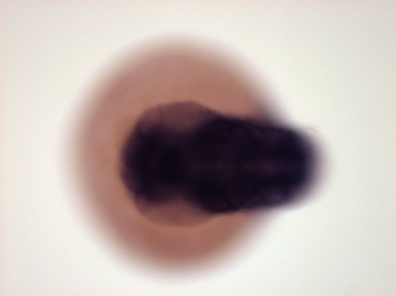 Fig. 5 head dorsal epidermis, forebrain ventricular zone, tegmentum, MHB, hindbrain, caudal vein, heart