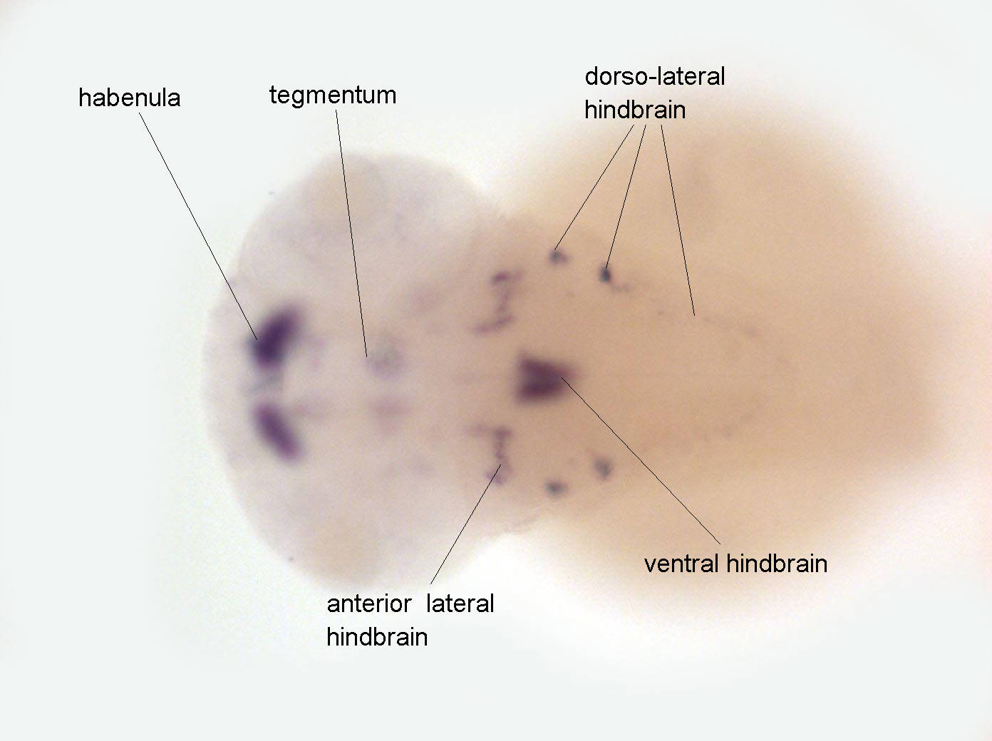 Fig. 6 Expressed in ventral telencephalon, in habenula, tegmentum, anterior hindbrain and in posterior hindbrain and anterior spinal chord