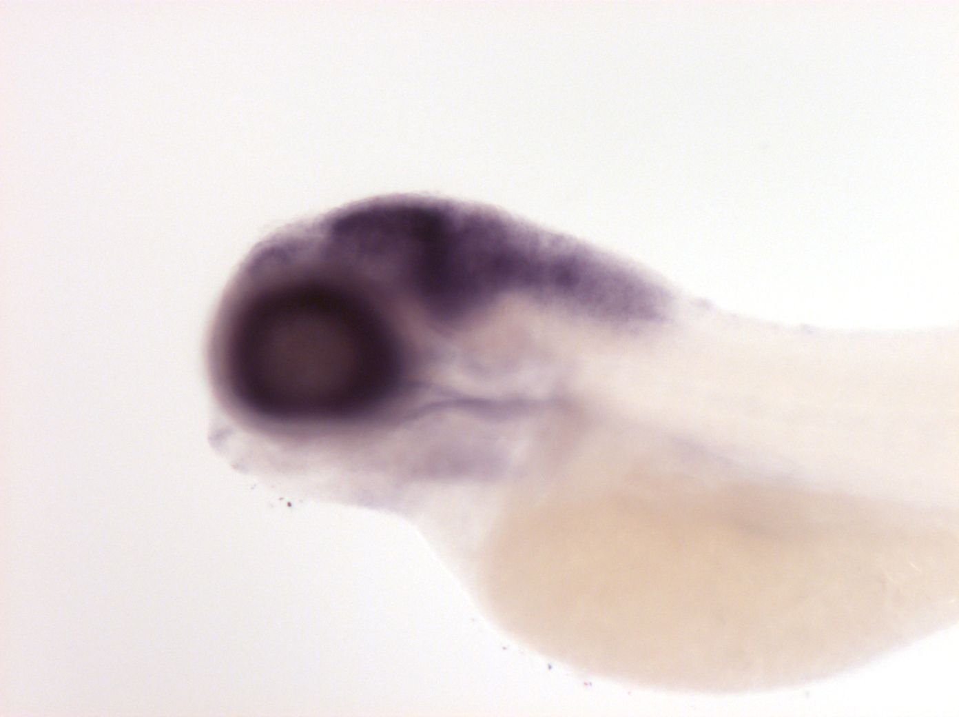 Please note that in 5 day old embryos some structures are not accessible to the probe (such as notochord, most of the trunk and tail). Therefore the description of the expression pattern is only partial.