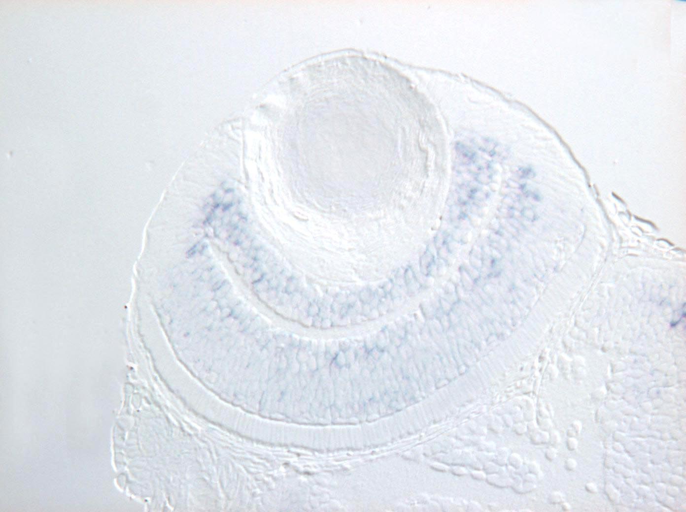 Fig. 7 Expressed in lateral part of the hindbrain, in cerebellum, tectum and retina ganglion and inner nuclear layer (except in the proliferative zone)