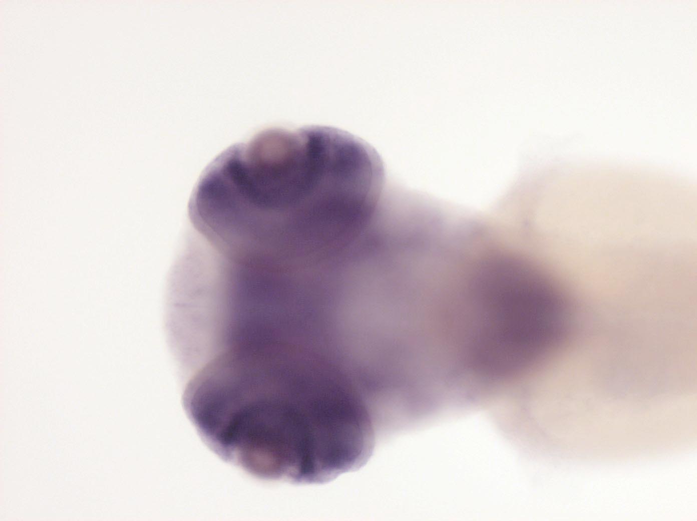 Fig. 6 Expressed in retina, tectum and hindbrain. In retina, expression is observed in ganglion cell layer and inner nuclear layer except in the proliferative zone. Labelling is stronger in the ganglion cell layer.