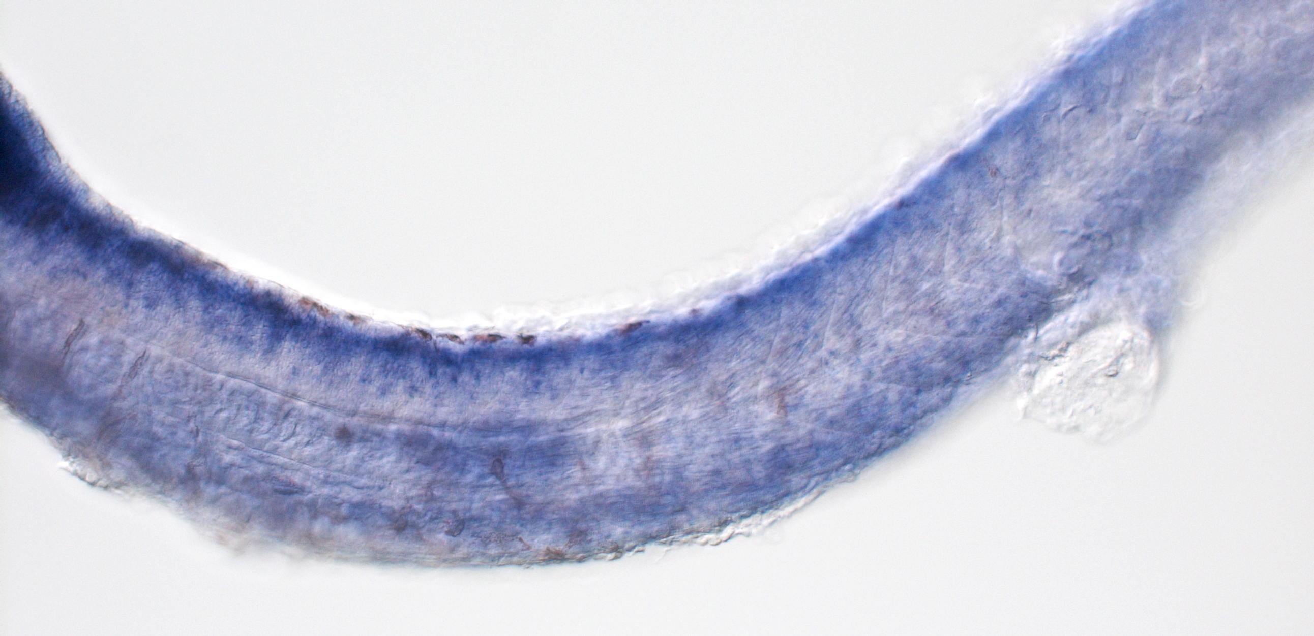 Fig. 34 Wild-Type. Prim-10 (27 hpf). Probe synthesis and in situ hybridisation was performed as described in England et al., Identifying Transcription Factors Expressed by Ventral Spinal Cord Interneurons. ZFIN on-line publication, 2014. Primer sequences were: Forward: TGAATTTGCTGCTTCACAGG. Reverse: AATTAACCCTCACTAAAGGGACTCGAGAGTGGACCACCATTT. PCR product size: 1082 bp.