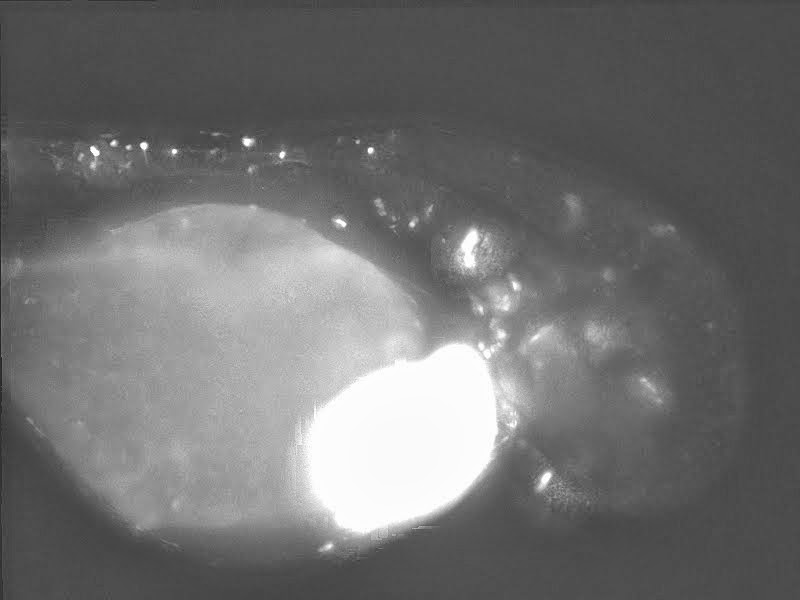 Fig.12 Larvae transgenic for Et(Gal4-VP16,myl7:GFP)zc1019b and Tg(UAS-E1b:Eco.NfsB-mCherry)c264 express mCherry in the otic vesicle and neurons.