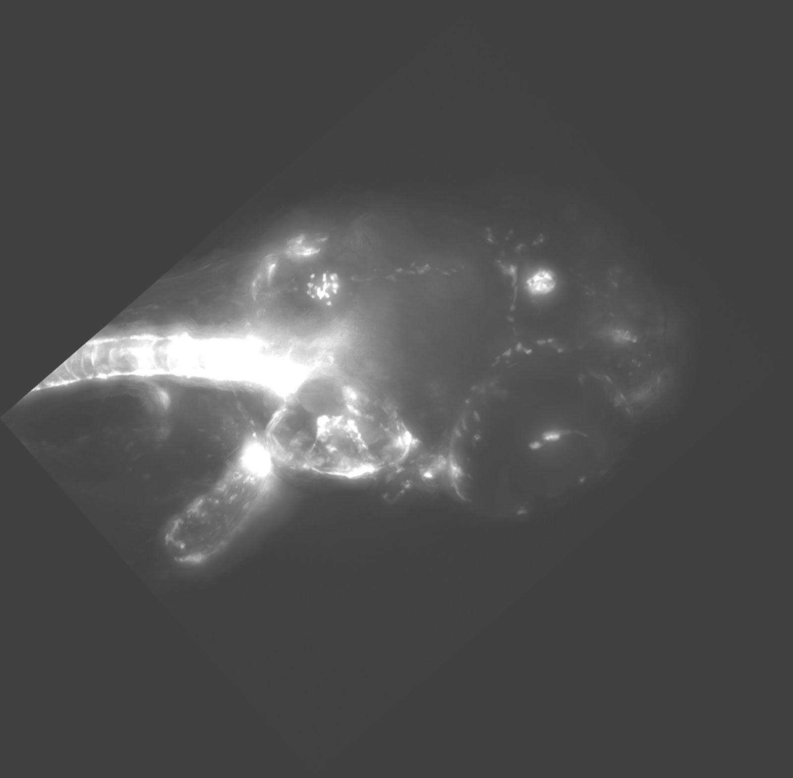 Fig.271 Larvae transgenic for Et(Gal4-VP16,myl7:GFP)zc1047a and Tg(UAS-E1b:Eco.NfsB-mCherry)c264 express mCherry in the epiphysis, hindbrain, and otic region.