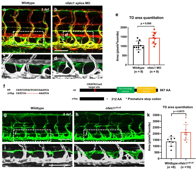 Figure 6 Suppressing nfatc1 promotes thoracic duct enlargement.