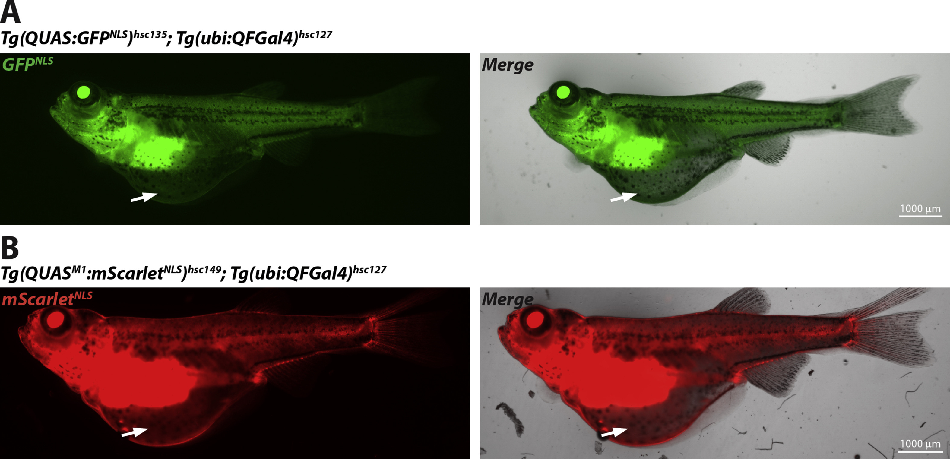 Reprinted from Developmental Biology, 465(2), Burgess, J., Burrows, J.T., Sadhak, R., Chiang, S., Weiss, A., D'Amata, C., Molinaro, A.M., Zhu, S., Long, M., Hu, C., Krause, H.M., Pearson, B.J., An optimized QF-binary expression system for use in zebrafish, 144-156, Copyright (2020) with permission from Elsevier. Full text @ Dev. Biol.
