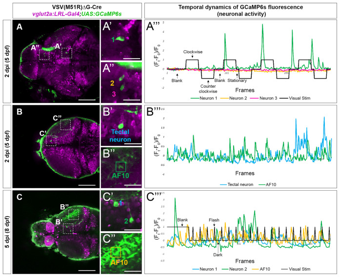 Temporal dynamic of calcium activities in multiple conditions captured from neurons infected with VSV(M51R)ΔG-Cre in