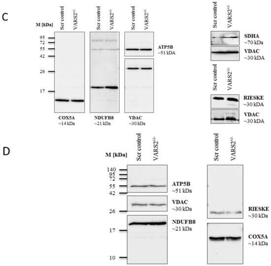 Figure 3. BN-PAGE analysis of respiratory chain supercomplex in mitochondria isolated from cells grown in glucose (A) or galactose (B). Western blot analysis of denatured respiratory subunits in mitochondria isolated from cells cultivated in glucose (C) or galactose (n = 1) (D). Mouse liver was run as a positive control.