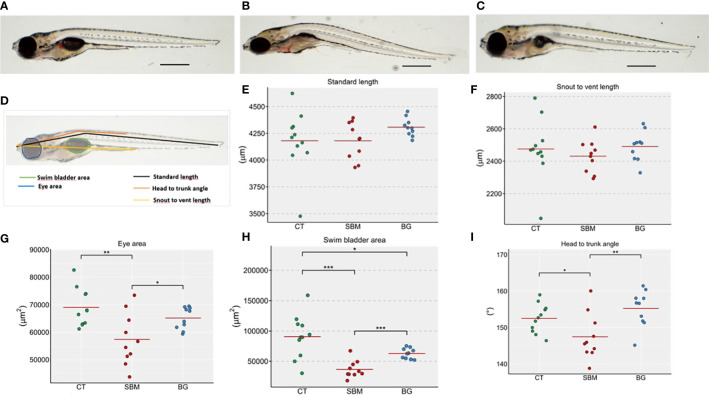 Diet-induced morphological changes in zebrafish larvae. Representative images of the zebrafish larvae fed the