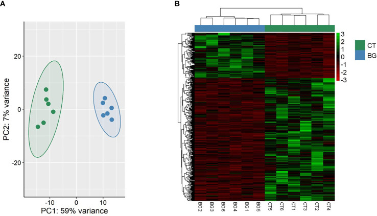 Transcriptome-based differences in the zebrafish larvae from the β-glucan group compared to the control group. Principal component analyses