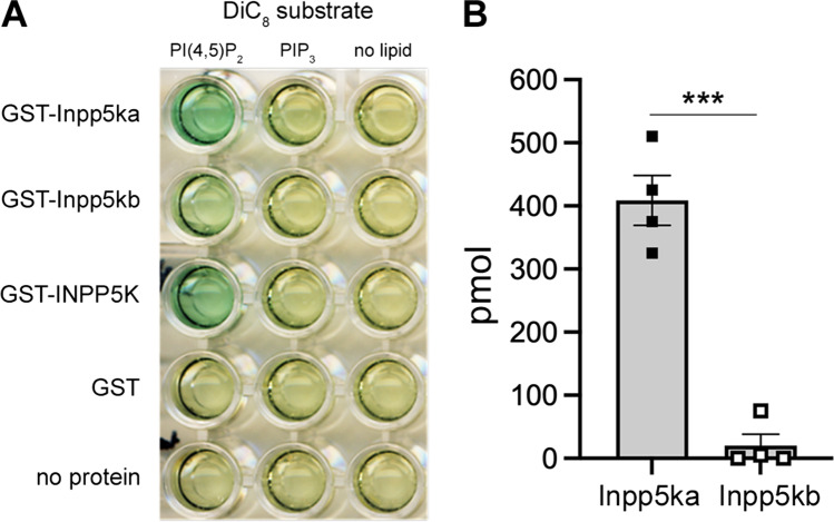 Inpp5ka and Inpp5kb exhibit different phosphatase activity.