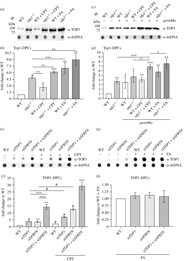 Tdp1 deficiency causes strong accumulation of endogenous and chemically induced Top1-DPCs in embryos and cells. (