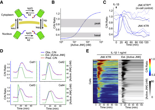 Fig. 4 KTR Modeling Allows Estimating Active JNK Kinase Concentration in Single Cells