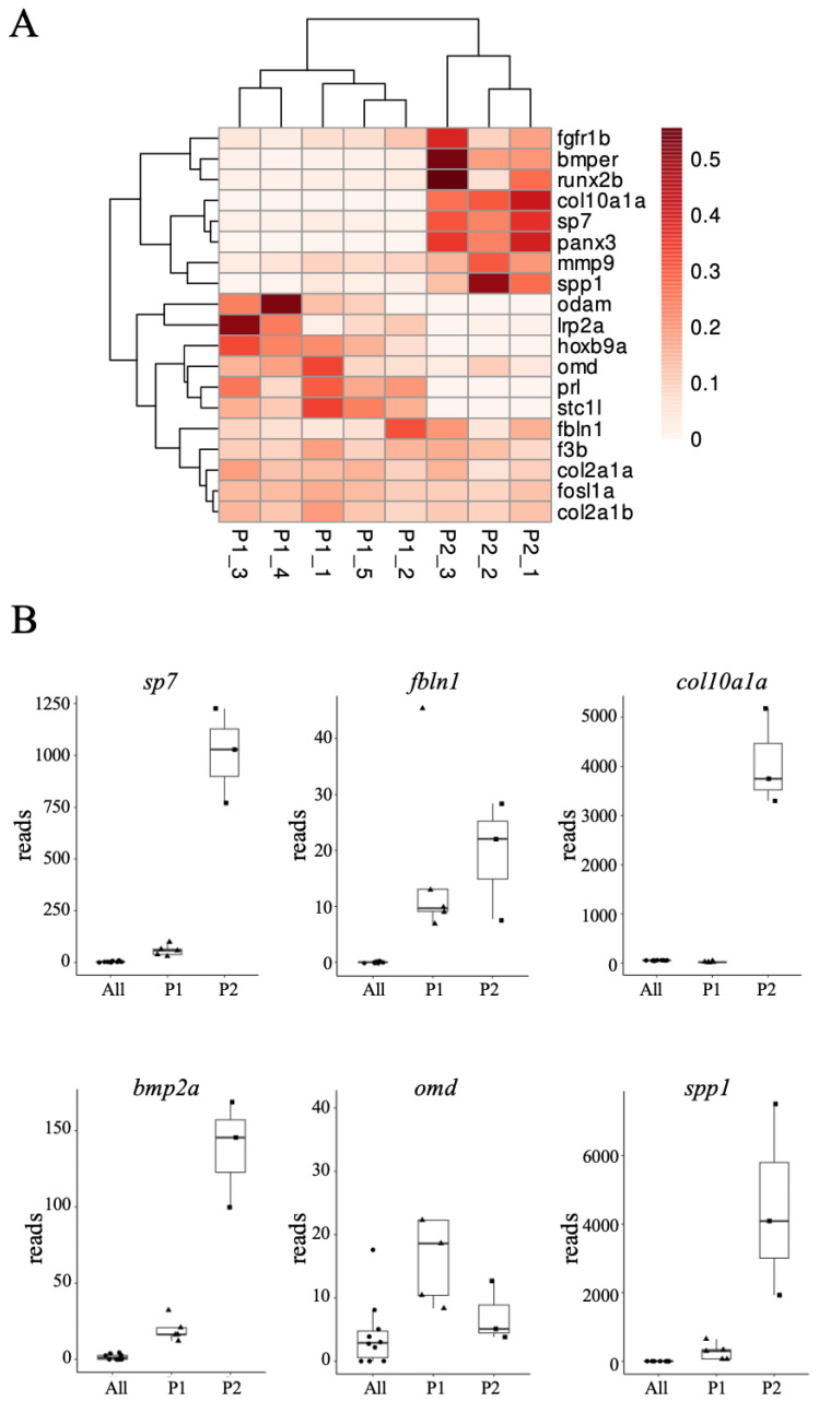 Specific genes present variable expression patterns when comparing the different cell populations. (