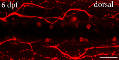 Fig. Supp. 2 Whole-mount Immunohistochemistry revealing calretinin protein in a 6dpf larva. Scale bar, 25 μm in all images. N = 10 larvae analyzed.
