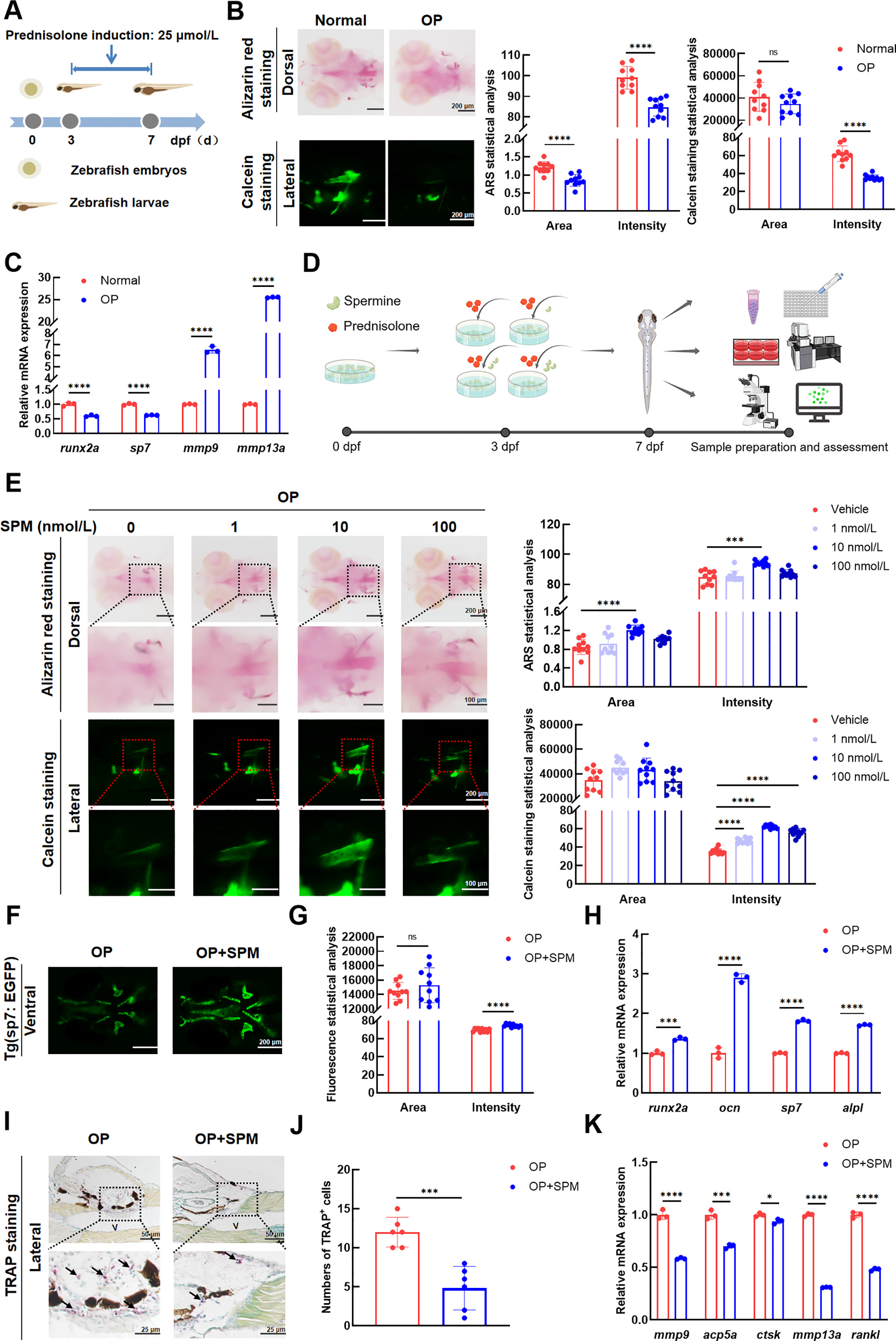 Fig. 1 Spermine (SPM) alleviated prednisolone (PN)-induced osteoporosis (OP) in zebrafish larvae