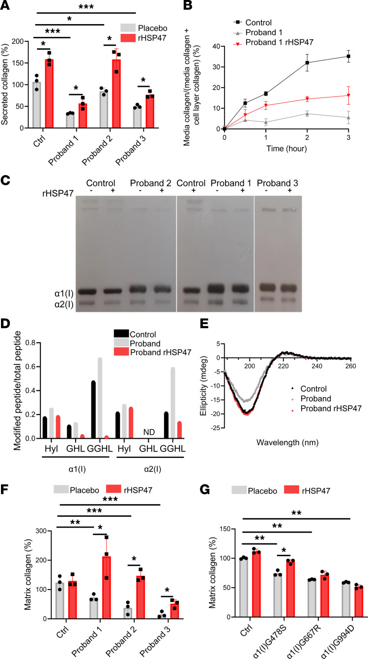 Figure 5 rHSP47 increases collagen secretion, reduces collagen overmodifications, and enhances collagen I deposition in the ECM.