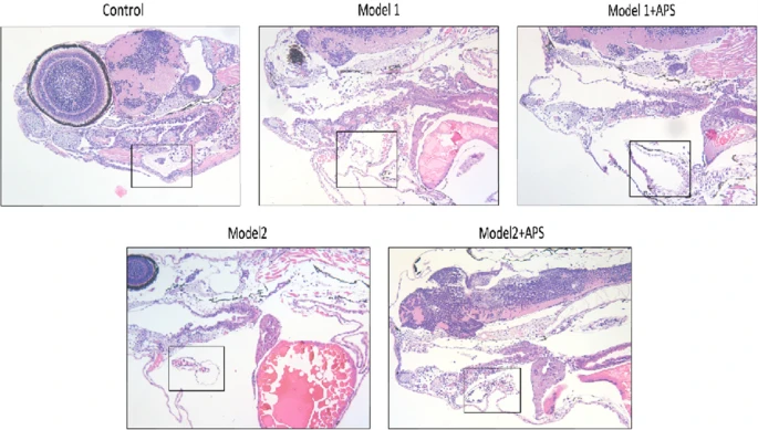 Fig. 4 APS reduces swelling to protect myocardial cells from injury on DCM Zebrafish. H&E staining of the heart area in zebrafish