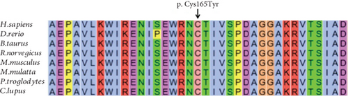 Fig. 1e Identification of a novel PRPS1 variant in human hearing loss. (a) Pedigree of a five-generation Chinese family with X-linked HL. Affected males are represented by filled squares, and affected females are represented by circles with center dots. Unaffected individuals are represented by open squares (males) and circles (females). The proband is indicated with a black arrow. Slant lines mark deceased individuals. (b) Audiograms of selected family members, showing air conduction thresholds. Blue “X” denotes the left ear, and red “O” denotes the right ear. (c) Sanger sequencing data from 21 participants showing the normal, hemizygous, and heterozygous PRPS1 variant carriers. (d) Crystal structure of human PRS-I (PDB: 2H06) and the predicted structure with the p.Cys165Tyr variant. (e) Conservation analysis of the cysteine residue at position 165 across species, estimated by T-Coffee.