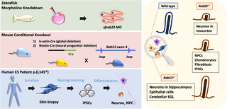 Fig. 7 Schematic illustration of the conserved functions of Rab23 in primary cilia. Rab23 exerts evolutionarily conserved and context-specific functions in maintaining morphologically intact and functional primary cilia. Specifically, in the absence of Rab23, severe perturbations in ciliogenesis were found in distinct neuronal populations in the neocortex, while neural progenitor cells, chondrocytes, fibroblasts and iPSCs, were less severely affected. No significant changes in primary cilia prevalence were observed in Rab23 knockout hippocampus neurons, epithelial cells, or cerebellar granule cell precursors.