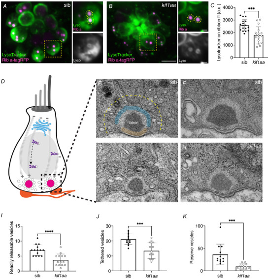 Figure 7 Kif1aa is important to maintain synaptic vesicles at ribbon synapses