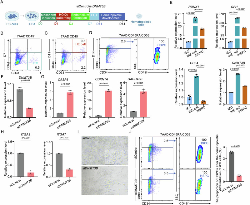 Fig. 7 DNMT3B knockdown impairs the iHSPCs generation during hematopoietic differentiation from human iPS cells in vitro.
