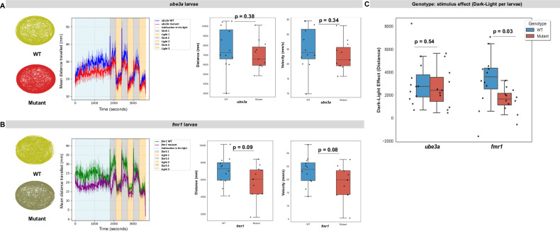 Locomotor activity during the light-dark test (LDT) in larval