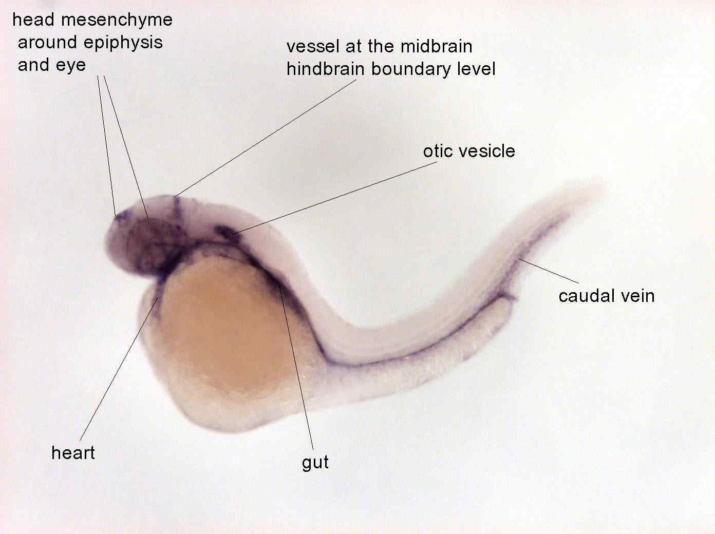 Fig. 5 expressed in the in the optic nerve and in the choroid fissure, in the head mesenchyme around the epiphysis and in the ventral mesenchyme, in the caudal vein and in the head vessels.