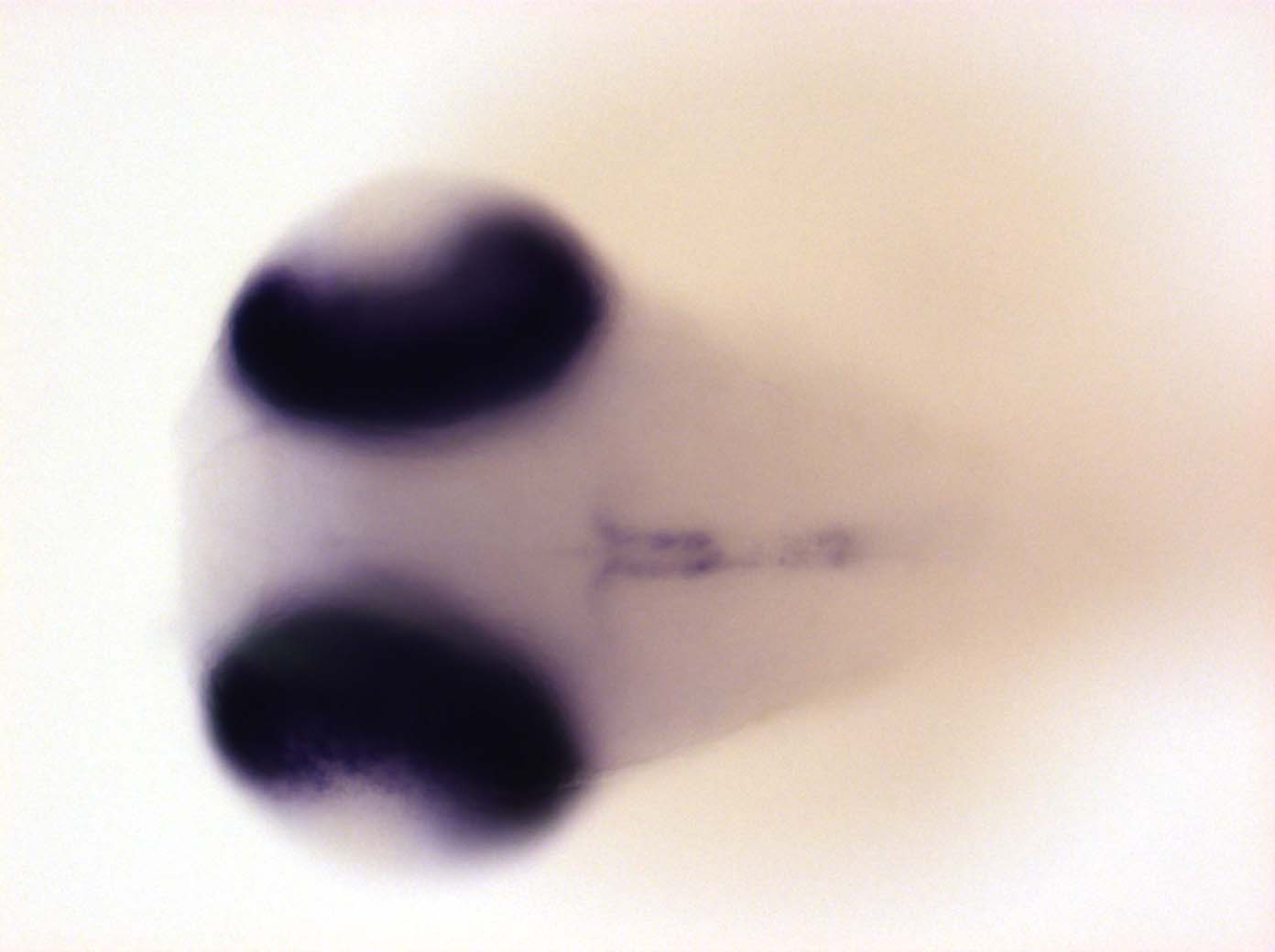 Please note that in 5 day old embryos some structures are not accessible to the probe (such as notochord, most of the trunk and tail). Therefore the description of the expression pattern is only partial.