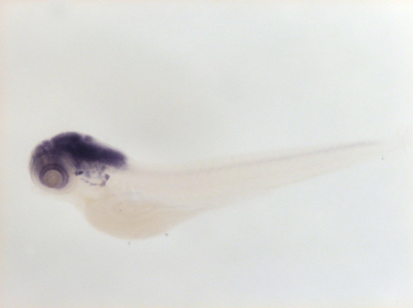 Please note that in 5 day old embryos some structures are not accessible to the probe (such as notochord, most of the trunk and tail). Therefore the description of the expression pattern is only partial.