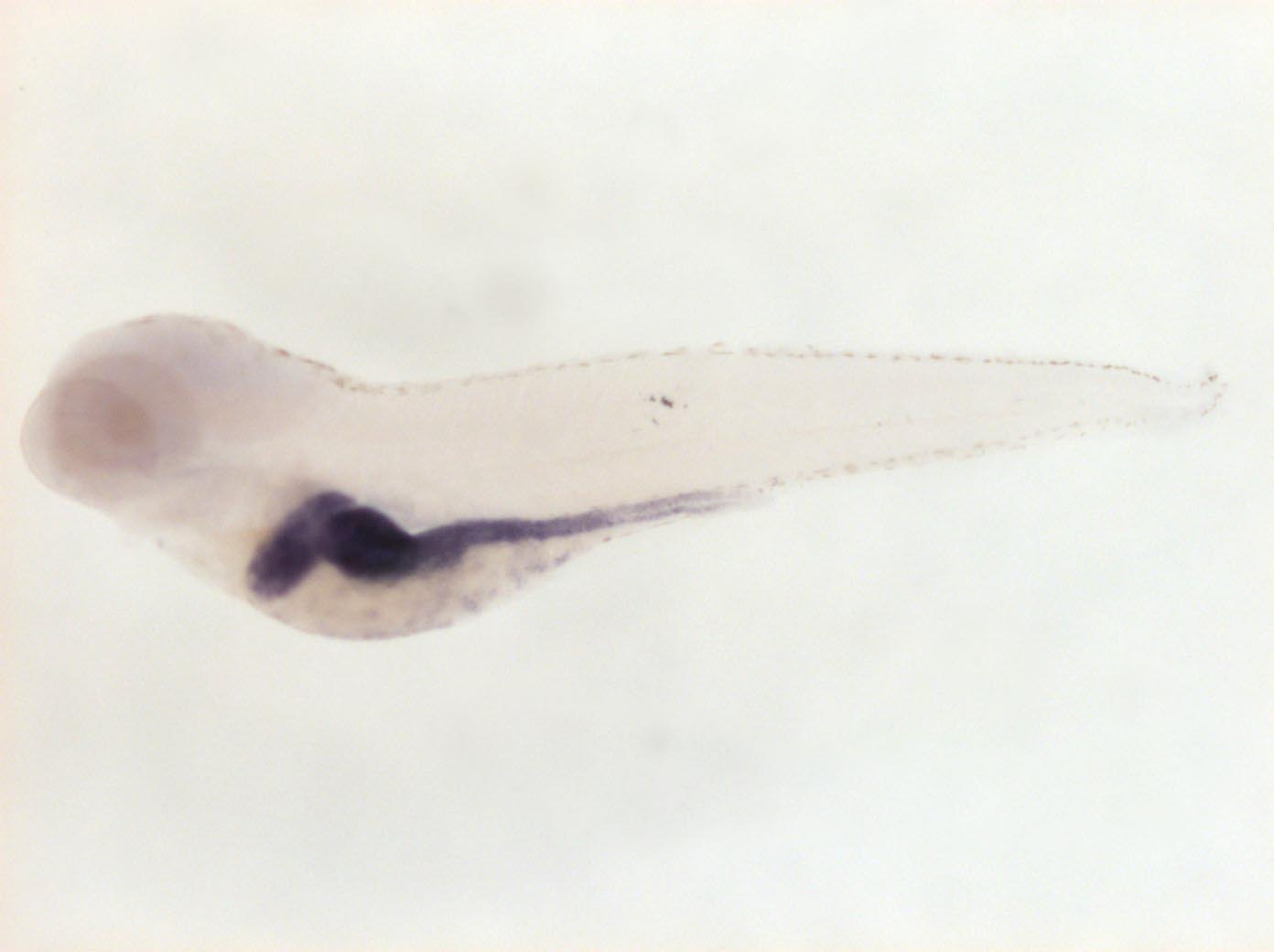Please note that in 5 day old embryos some structures are not accessible to the probe (such as notochord, most of the trunk and tail). Therefore the description of the expression pattern is only partial.