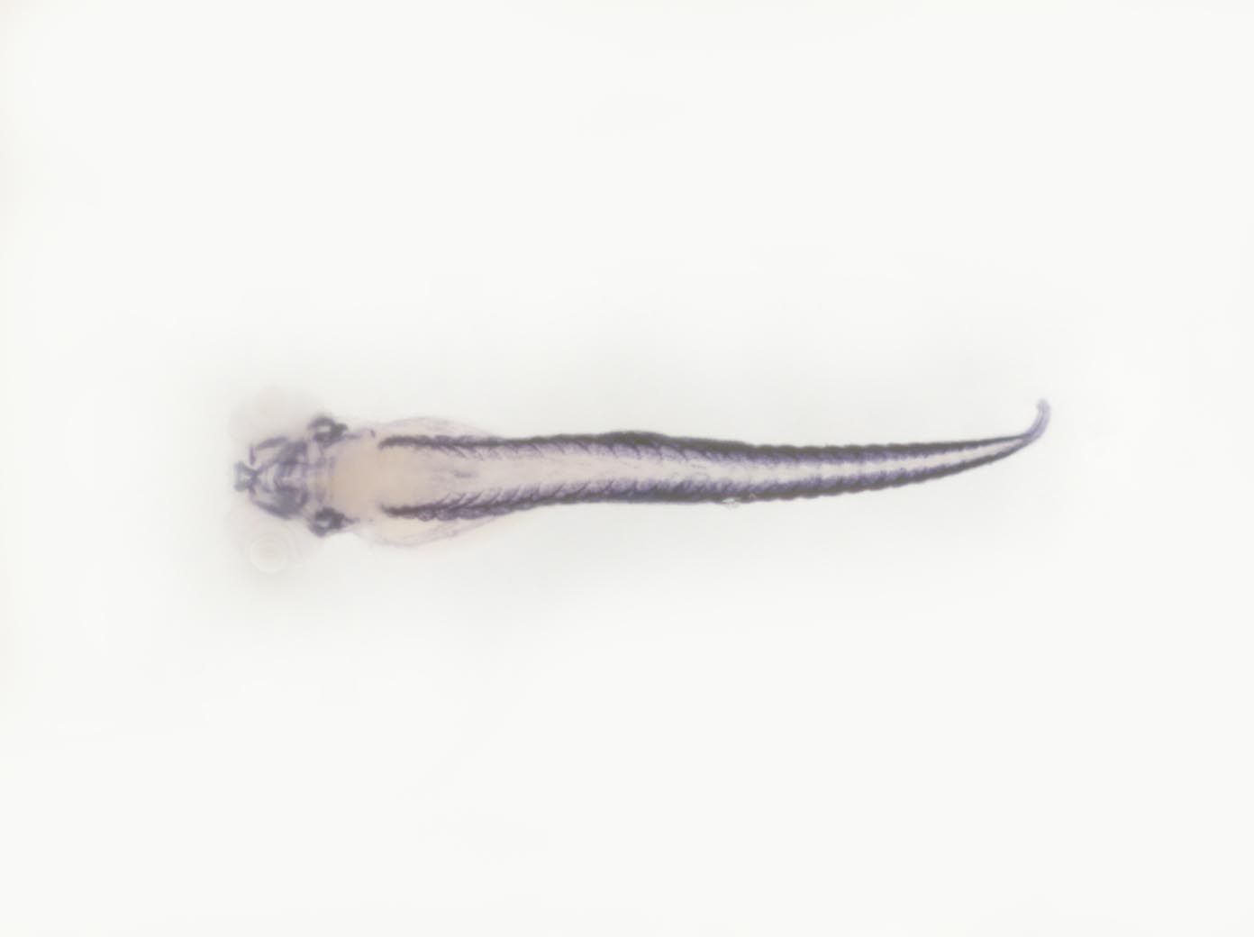 Please note that in 5 day old embryos some structures are not accessible to the probe (such as notochord, most of the trunk and tail). Therefore the description of the expression pattern is only partial.