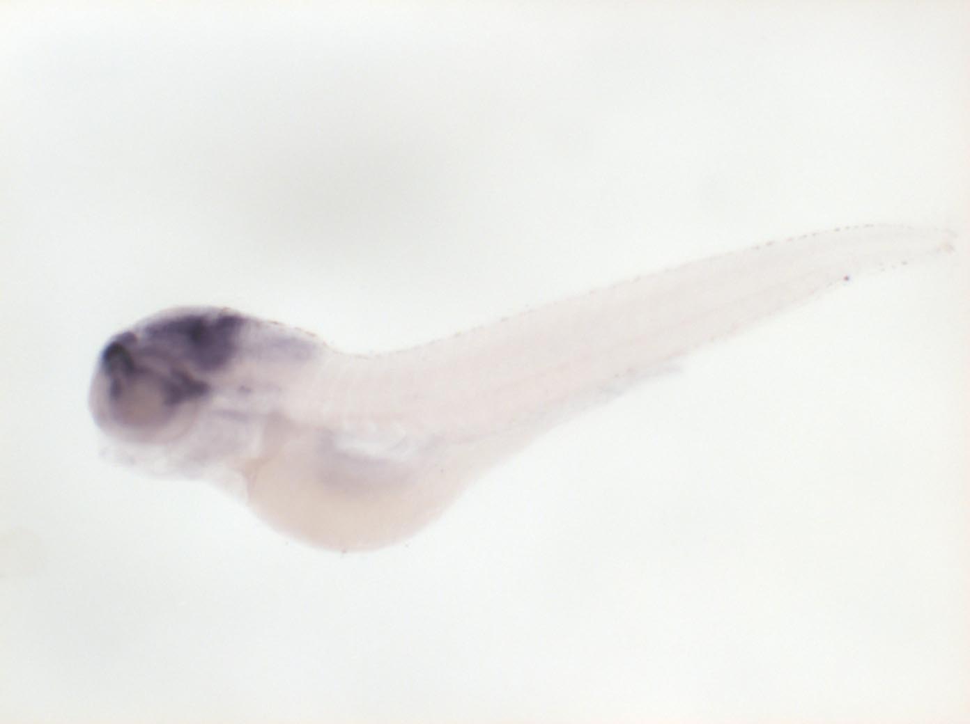 Please note that in 5 day old embryos some structures are not accessible to the probe (such as notochord, most of the trunk and tail). Therefore the description of the expression pattern is only partial.