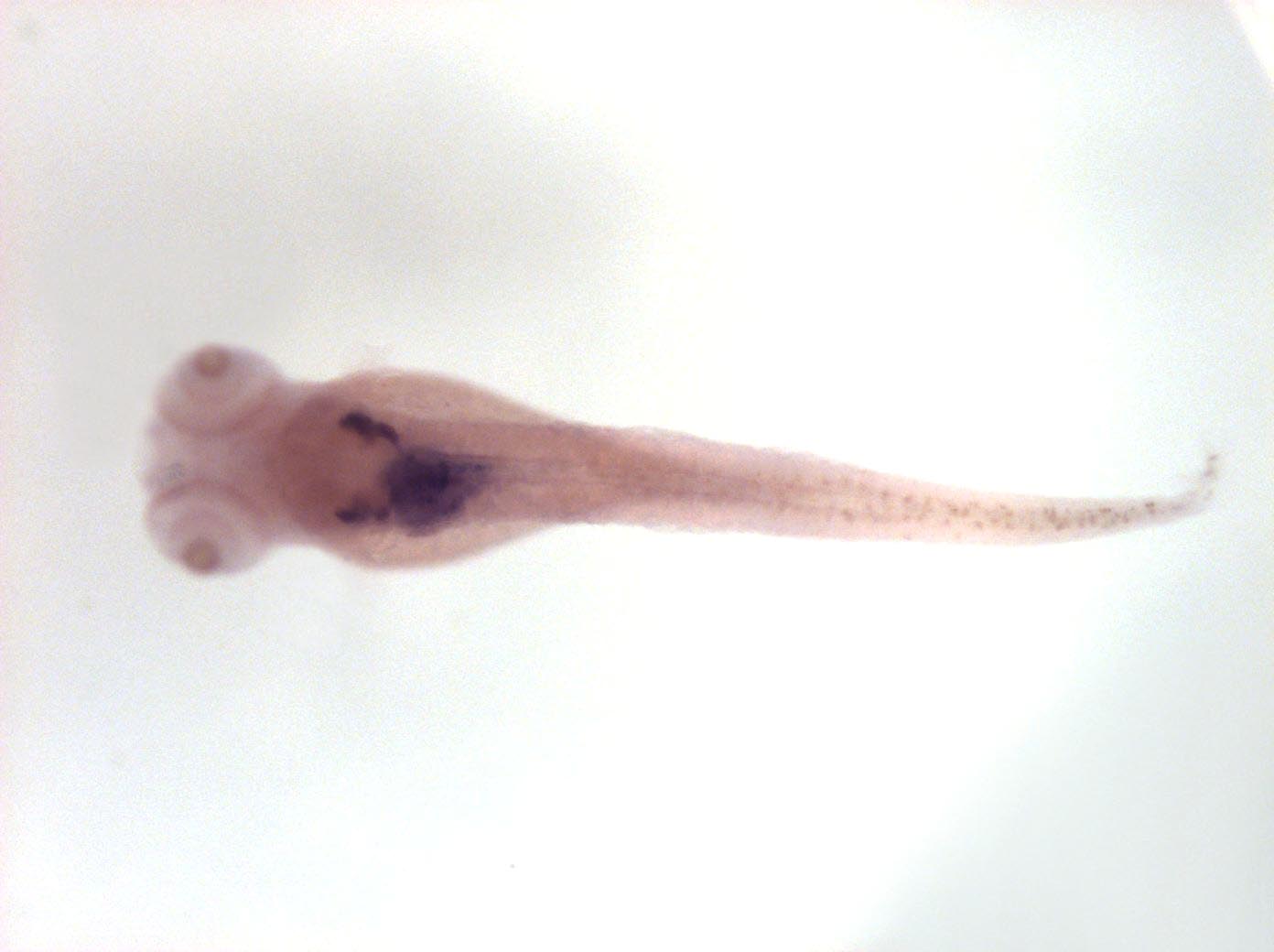 Please note that in 5 day old embryos some structures are not accessible to the probe (such as notochord, most of the trunk and tail). Therefore the description of the expression pattern is only partial.