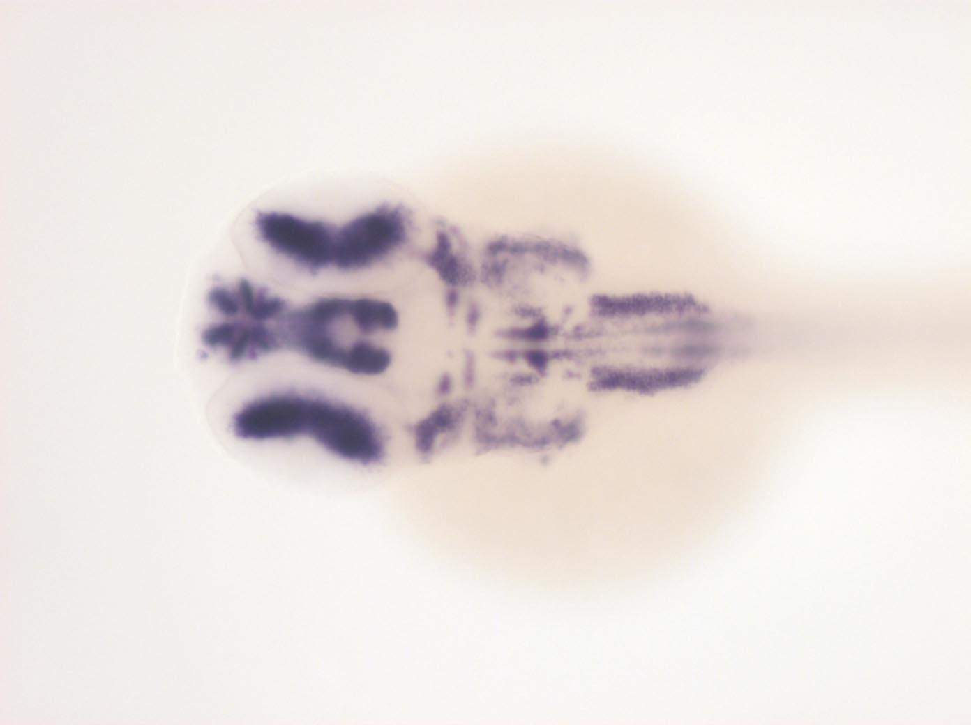 Fig. 5 ventral telencephalon, hypothalamus, anterior ventral diencephalon, ventral anterior retina, trigeminal ganglion, pharyngeal arches, pancreas, ventral hindbrain and spinal chord neurons, dorsal spinal chord neurons.