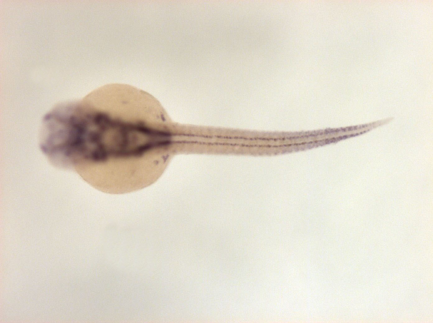 Fig. 5 nose, epiphysis, ventral posterior tegmentum, dorsal cerebellum, dorsal hindbrain, cranial ganglia, nuclei in ventral hindbrain, ventral part of retina, habenula (left, very weak expression on right side), hypaxial part of anterior somites, spinal chord neurons.