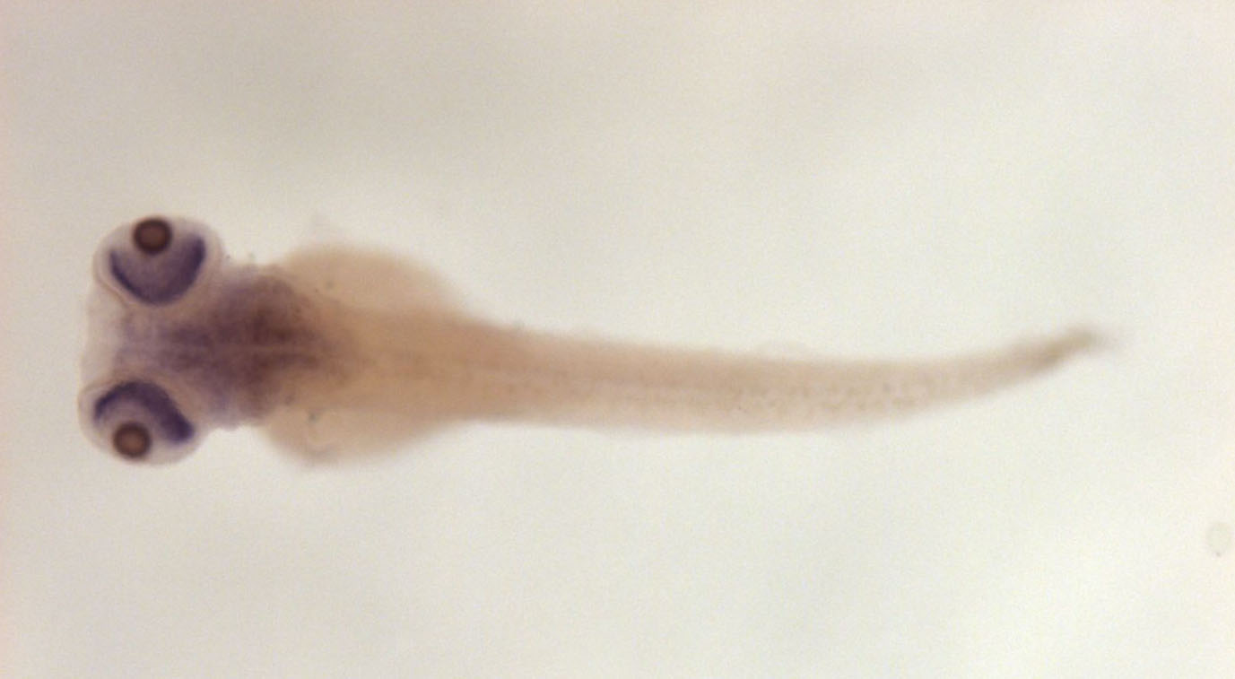 Please note that in 5 day old embryos some structures are not accessible to the probe (such as notochord, most of the trunk and tail). Therefore the description of the expression pattern is only partial.
