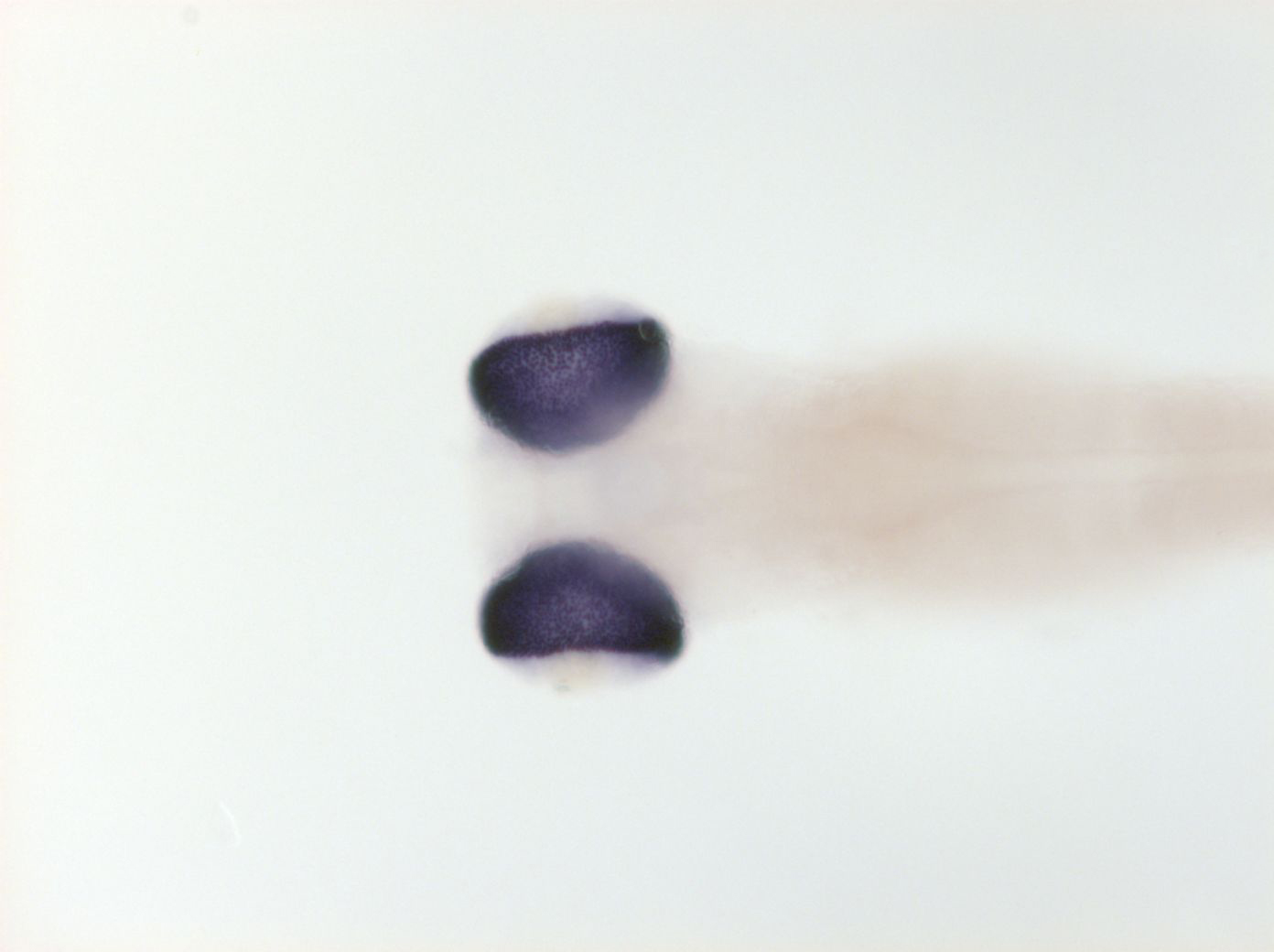 Please note that in 5 day old embryos some structures are not accessible to the probe (such as notochord, most of the trunk and tail). Therefore the description of the expression pattern is only partial.