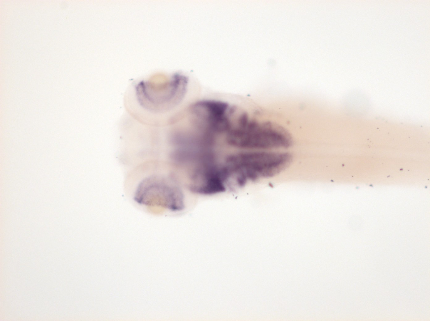 Please note that in 5 day old embryos some structures are not accessible to the probe (such as notochord, most of the trunk and tail). Therefore the description of the expression pattern is only partial.