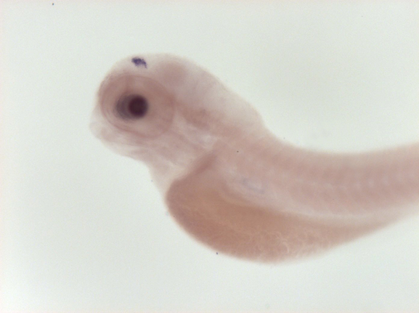Please note that in 5 day old embryos some structures are not accessible to the probe (such as notochord, most of the trunk and tail). Therefore the description of the expression pattern is only partial.
