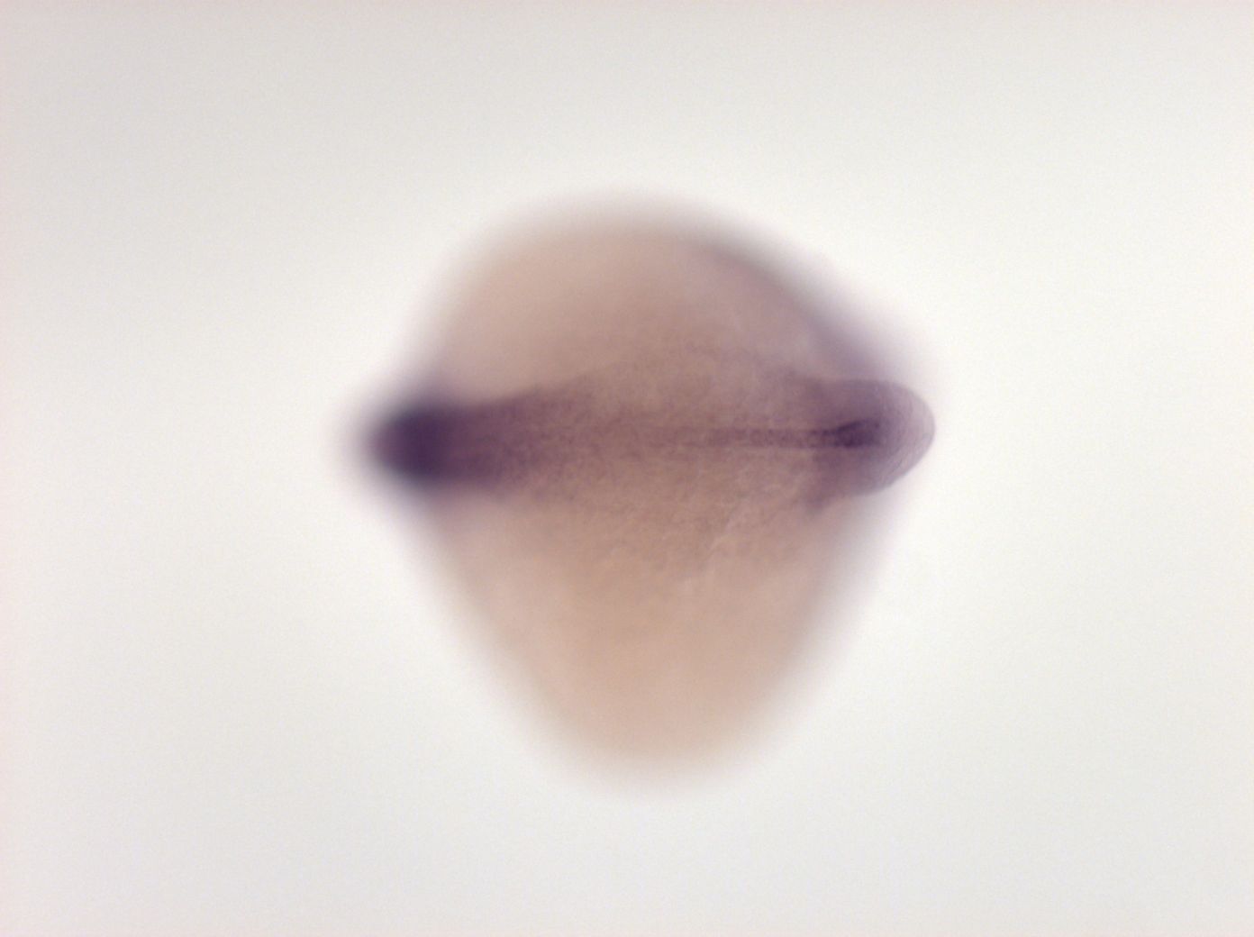 Fig. 3 Expressed in hatching gland, notochord, in two spot anterior and posterior in the otic vesicle