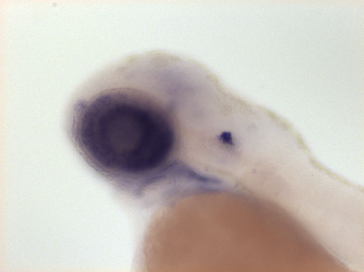 Fig. 6 nose, retina ganglion and inner cell nuclear layer, weak in nucleus in tegmentum, dorsal part of otic vesicle